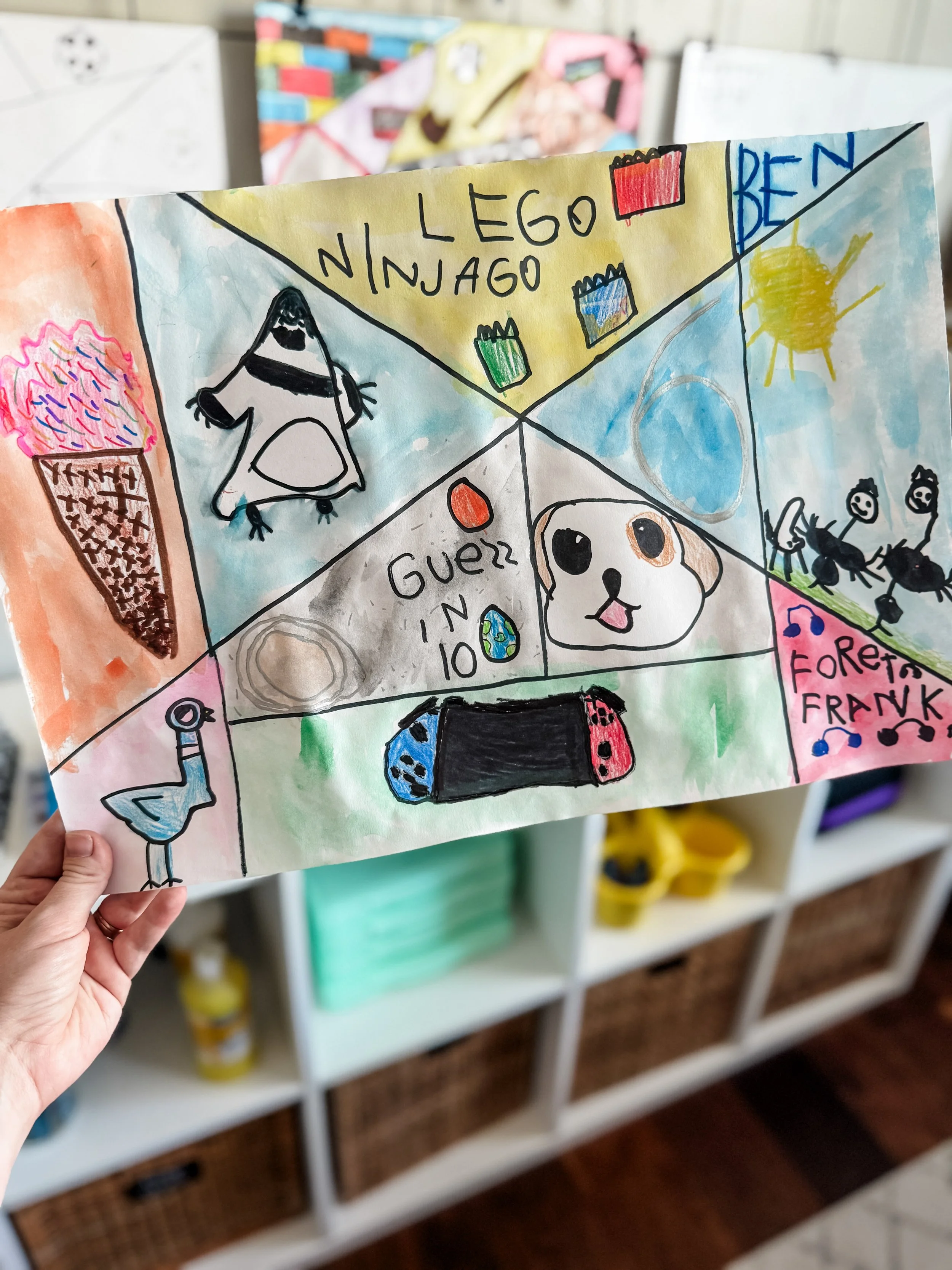 At the beginning of a new homeschool year, we like to spend the first few weeks doing something fun as we’re trying to settle into a new rhythm. We enjoy art so that is what we look forward to doing, but totally fine if that’s not your thing —maybe your fun thing is going to the park or baking a fun snack. Either way, kicking the year off with an art project has unintentionally become one of our traditions. A few times now we’ve centered our art projects around the All About Me theme and I really like that because it gives the kids an opportunity to express who they are. I’ll share what we’re working on right now, but also link a bunch of other ideas we’ve done over the years down below!